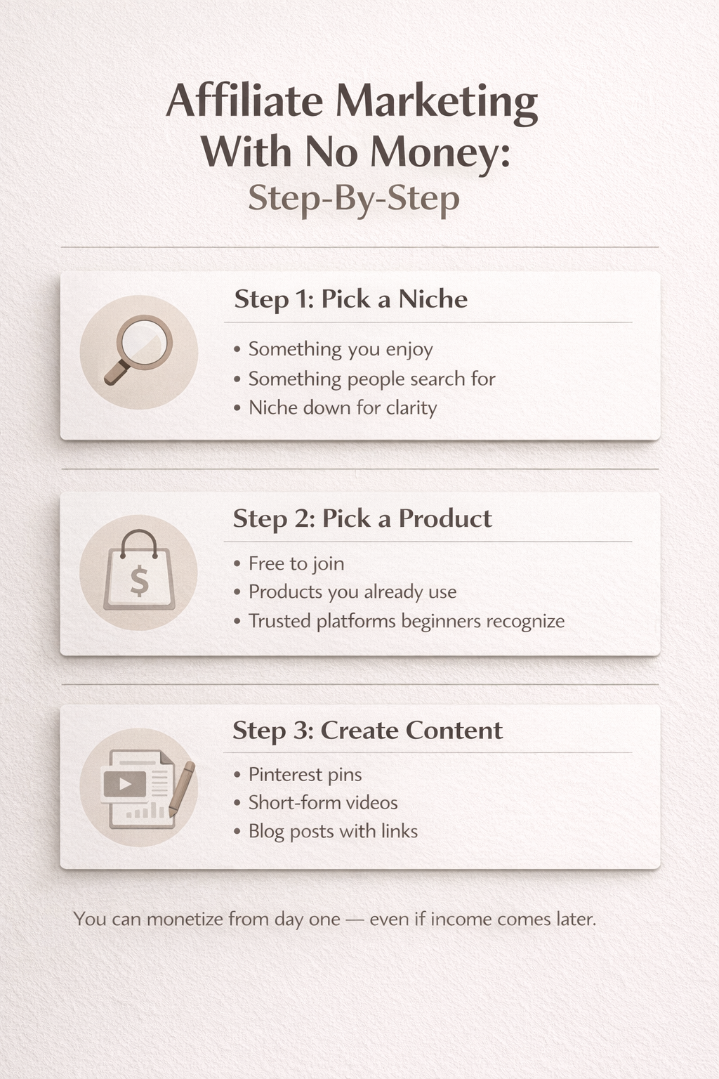 Now that we know what affiliate marketing is and what it is not, here is your first simple step to start affiliate marketing with no money.